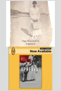 This photo shows a group of Russian naval officers, together with Tsar Nicholas II and his family. It is taken on the deck of the Standart, so I assume the men all served on board the yacht. My grandfather, Pavel Voronov, is sitting cross legged in the front row between the Tsarevitch Alexei and Grand Duchess Anastasia. Both of the children are leaning on my grandfather’s knees. Behind my grandfather is the Empress Alexandra. What I love most about this photo is that Alexei has bare feet.